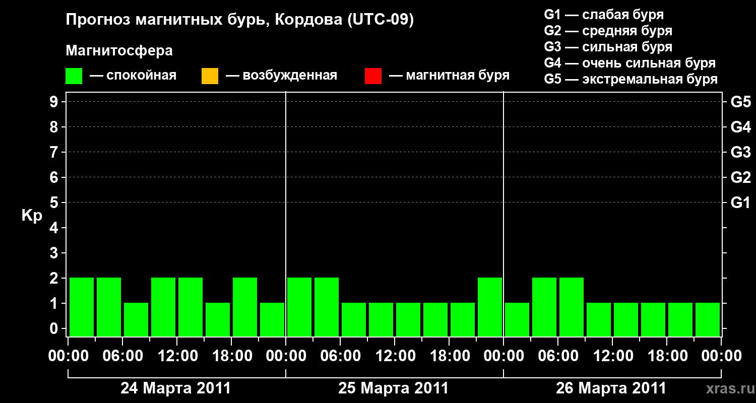 Прогноз магнитных бурь в Кордове на 24 марта 2011 года