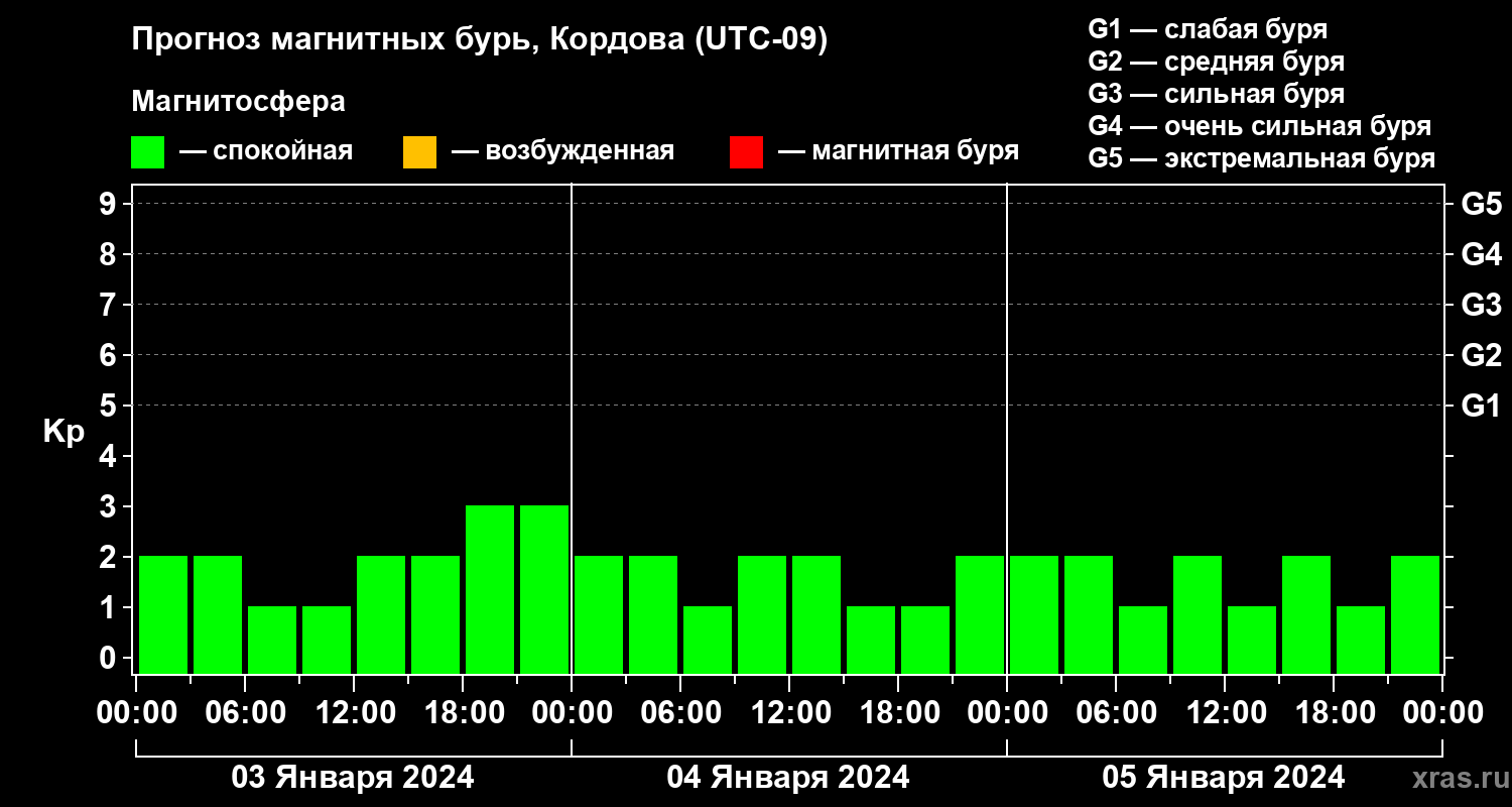 Прогноз магнитных бурь в Кордове — 3 января 2024 года