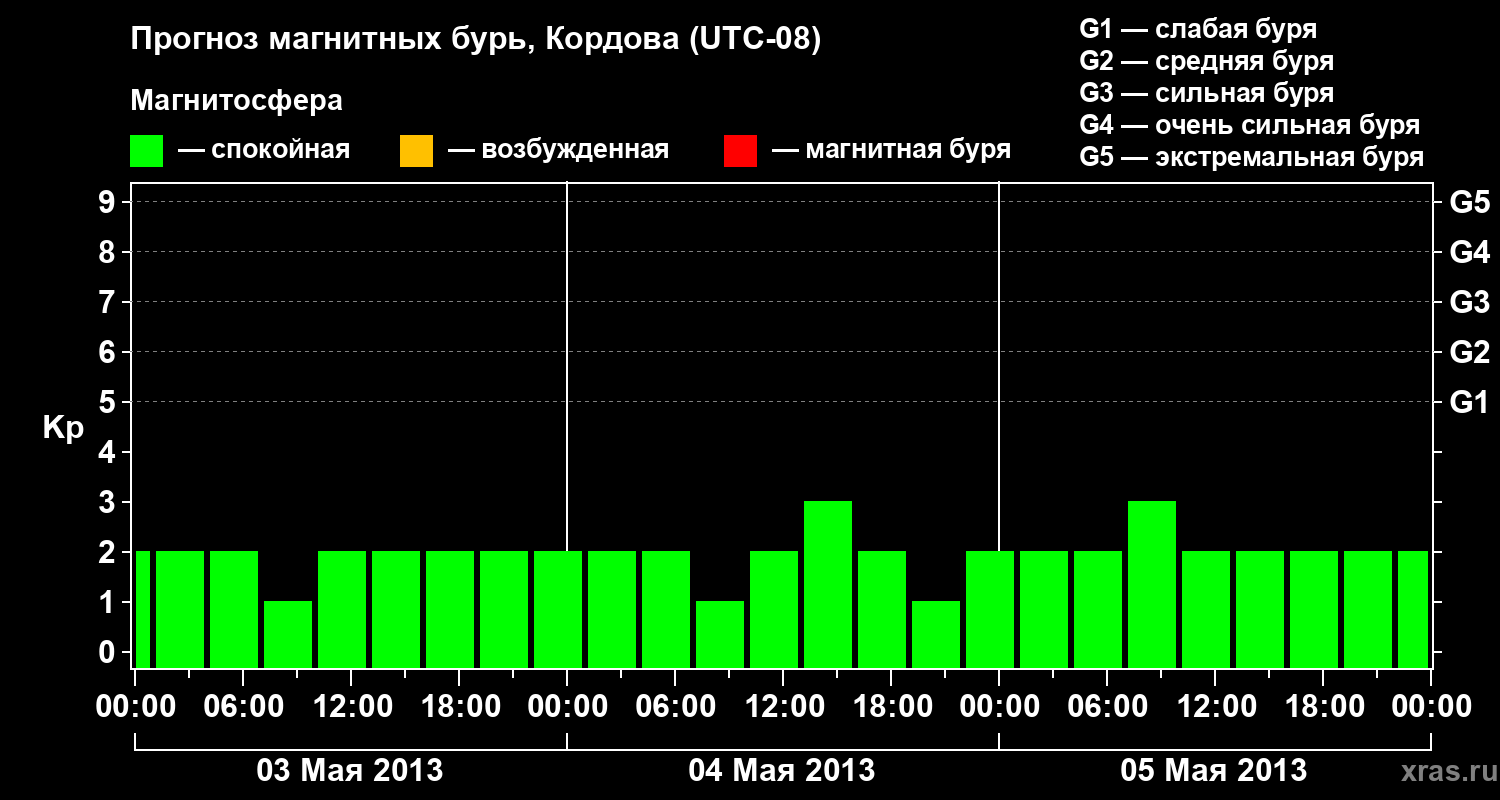 Прогноз магнитных бурь в Кордове на 3 мая 2013 года