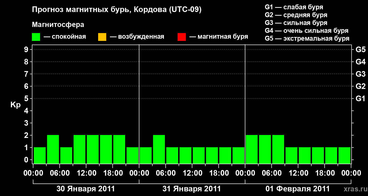 Прогноз магнитных бурь в Кордове — 30 января 2011 года