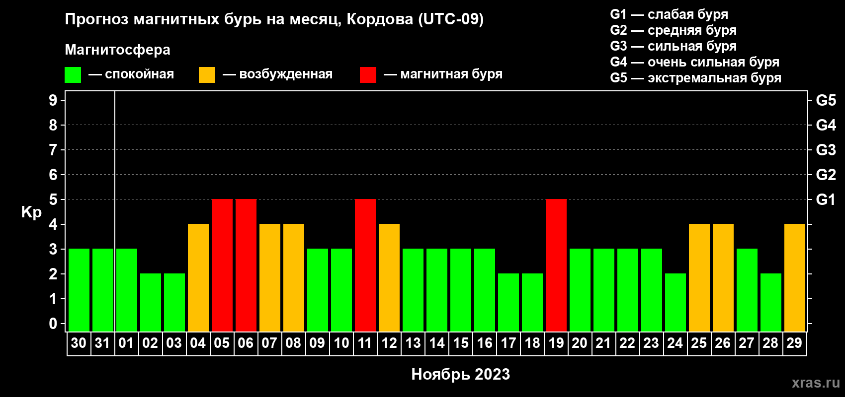 Прогноз магнитных бурь в Кордове — 30 октября 2023 года