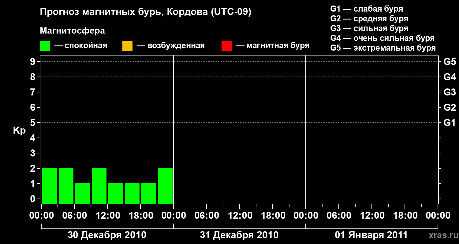 Прогноз магнитных бурь в Кордове — 30 декабря 2010 года