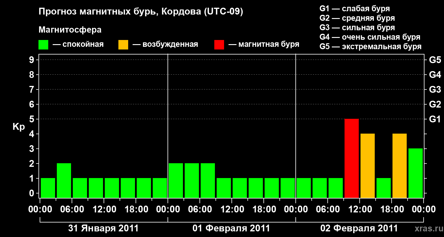 Прогноз магнитных бурь в Кордове — 31 января 2011 года