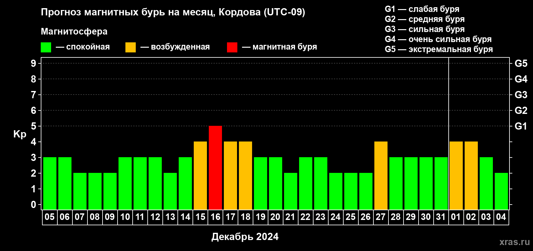 Прогноз магнитных бурь в Кордове — 5 декабря 2023 года