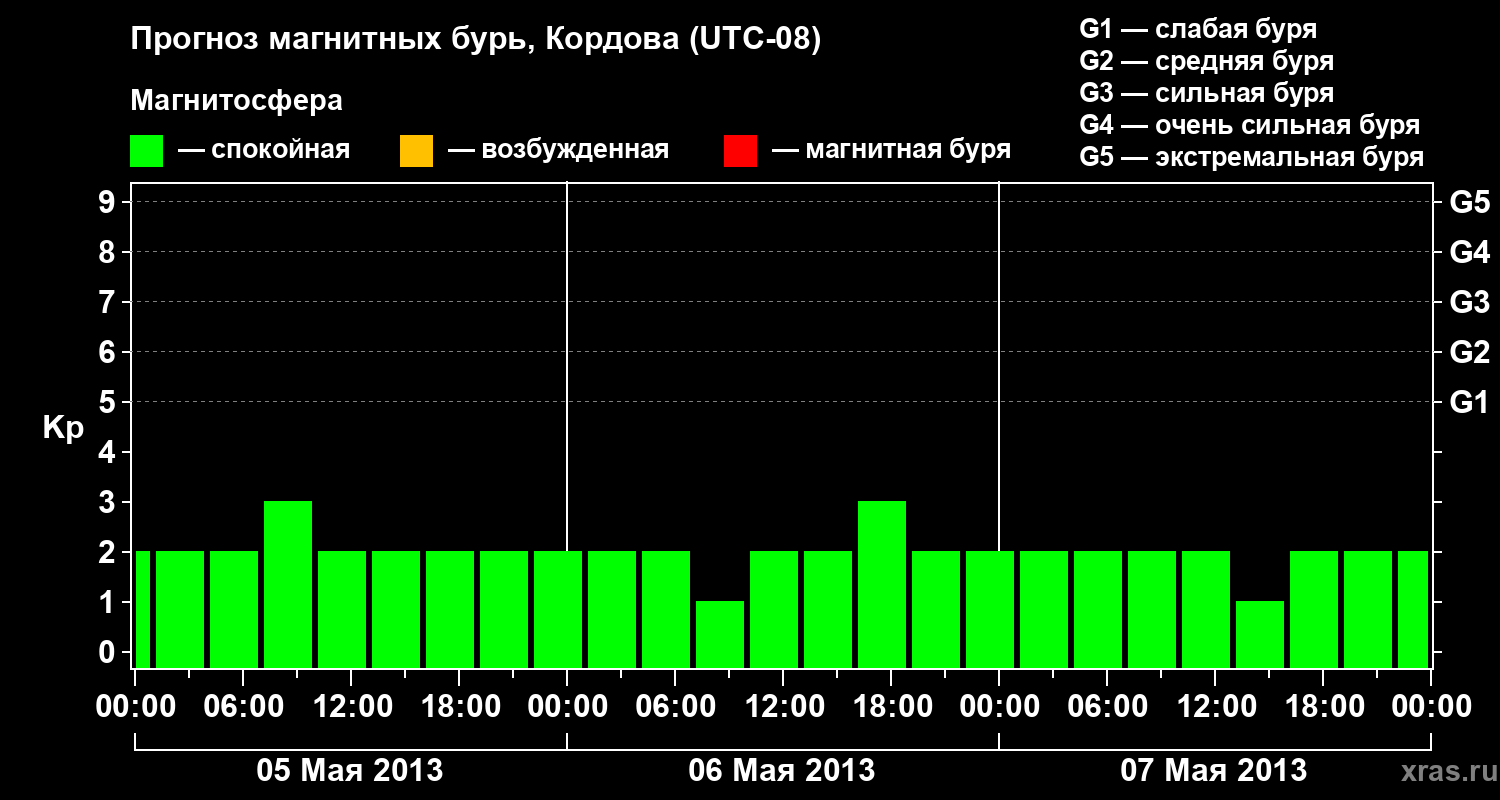 Прогноз магнитных бурь в Кордове на 5 мая 2013 года