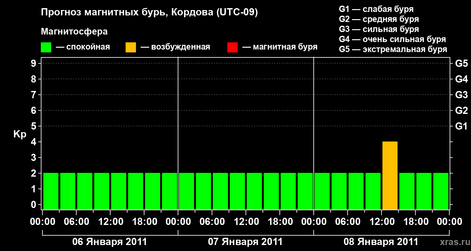 Прогноз магнитных бурь в Кордове — 6 января 2011 года