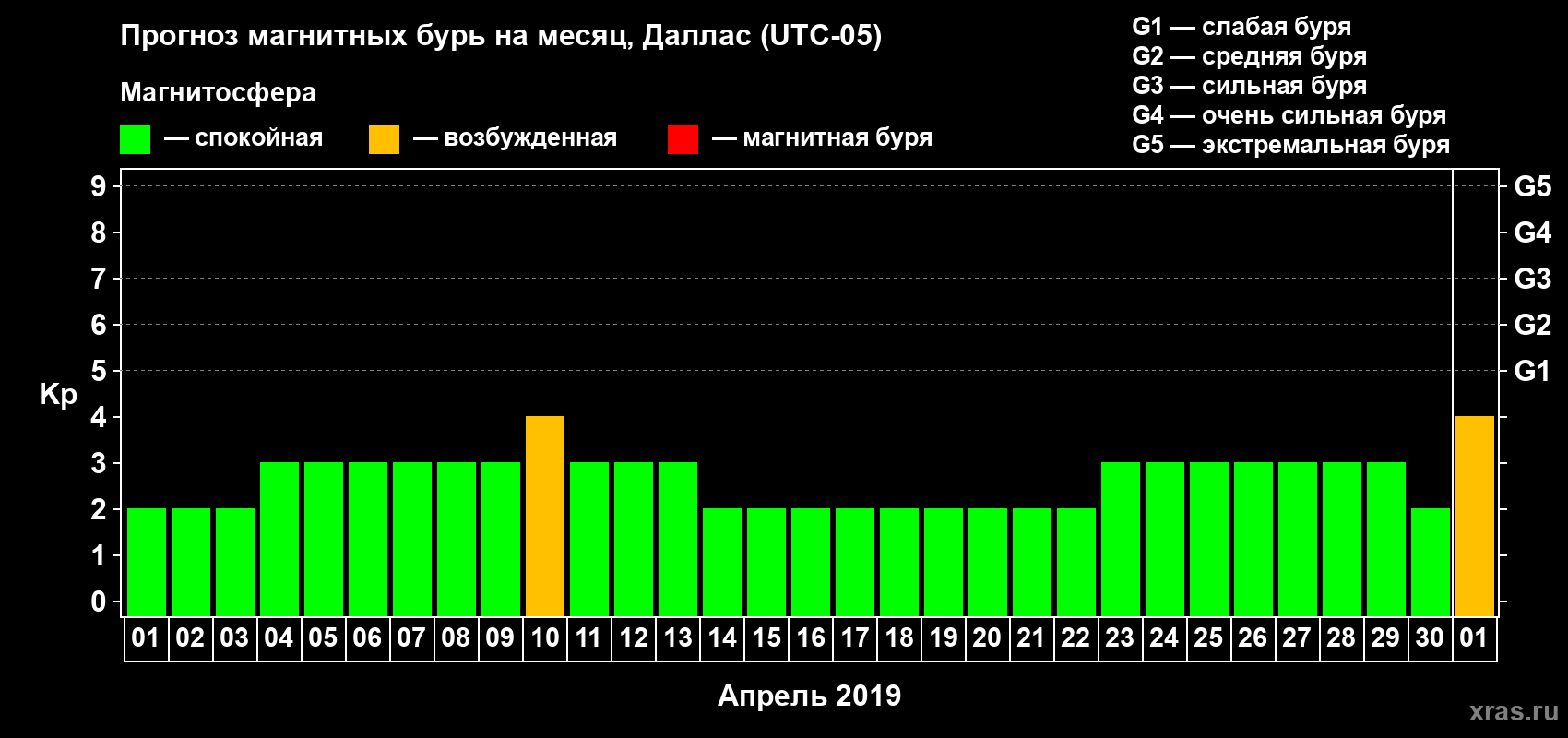 Прогноз магнитных бурь в Далласе на 1 апреля 2019 года