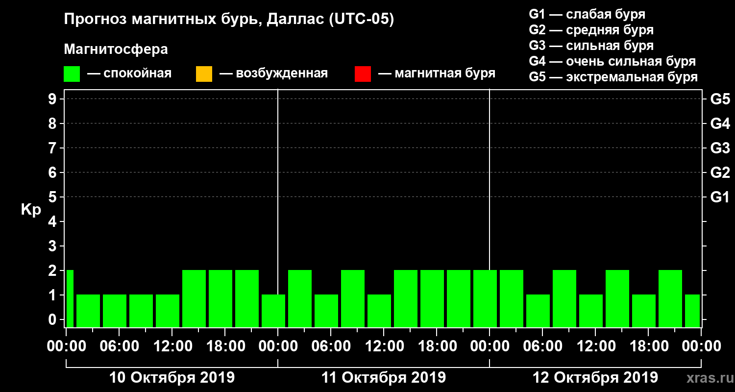 Прогноз магнитных бурь в Далласе — 10 октября 2019 года