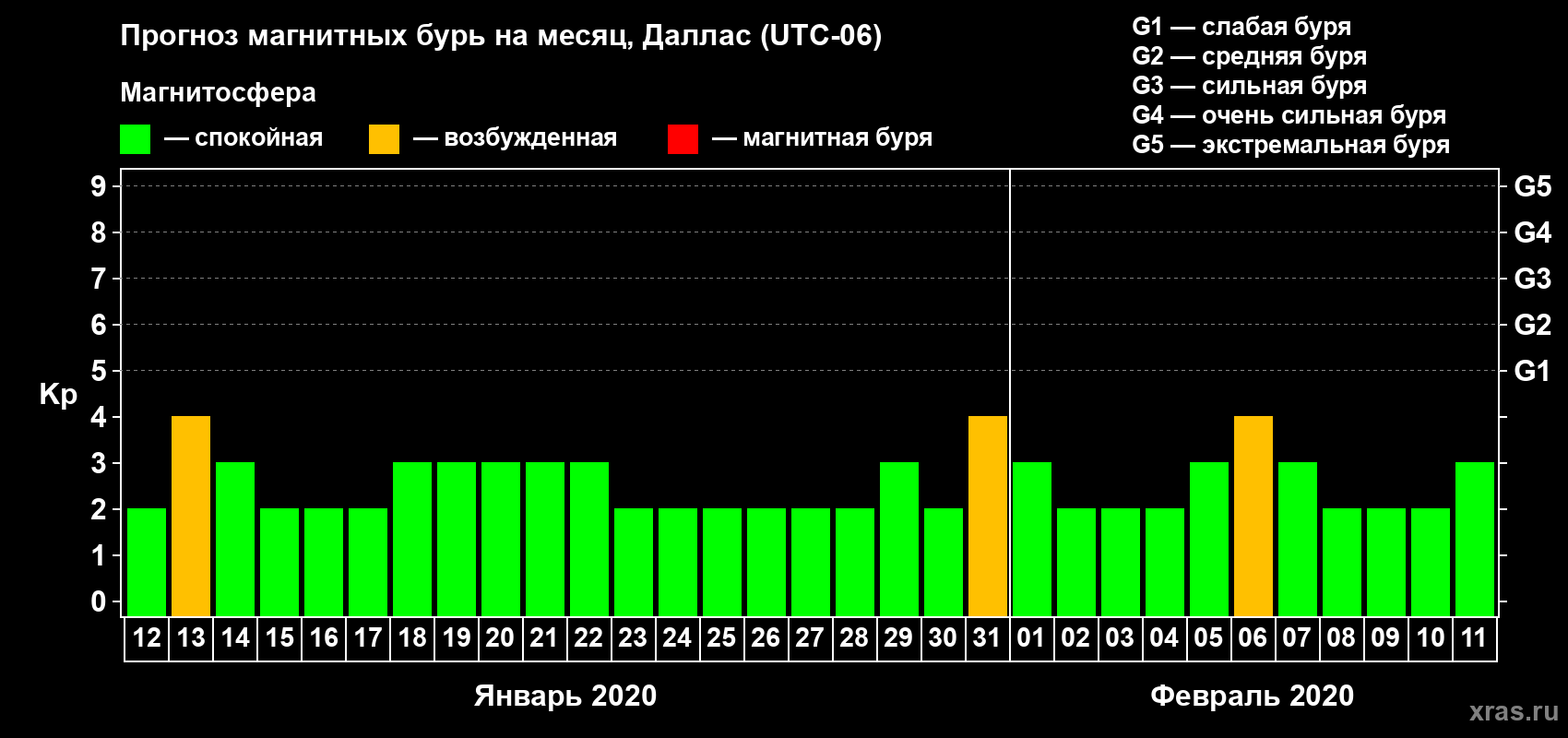 Прогноз магнитных бурь в Далласе — 12 января 2020 года