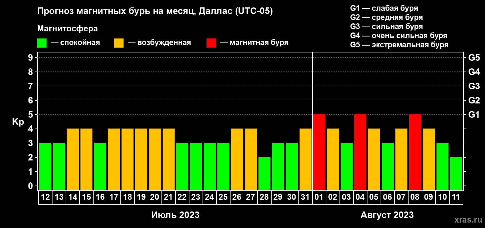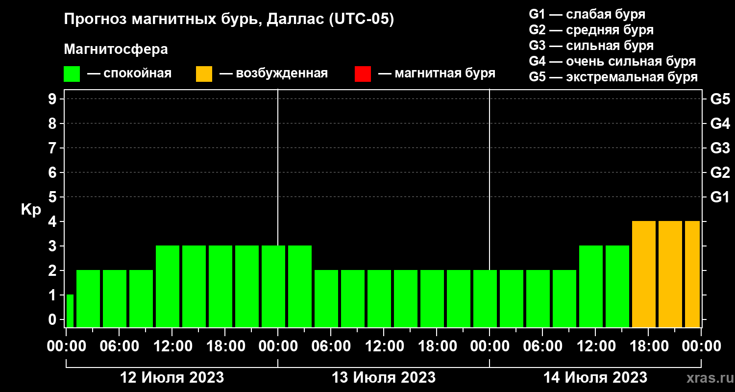 Прогноз магнитных бурь в Далласе — 12 июля 2023 года