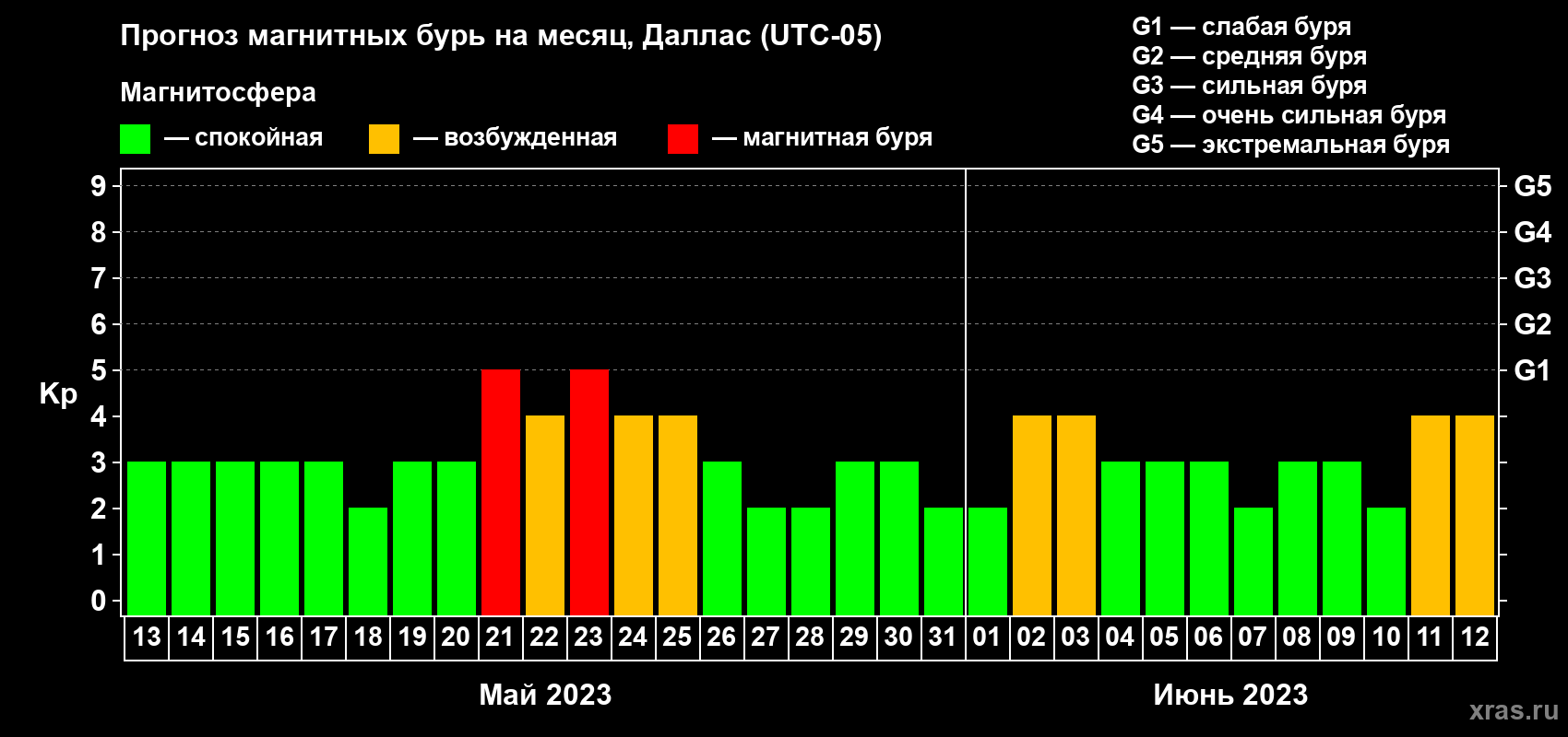 Прогноз магнитных бурь в Далласе на 13 мая 2023 года