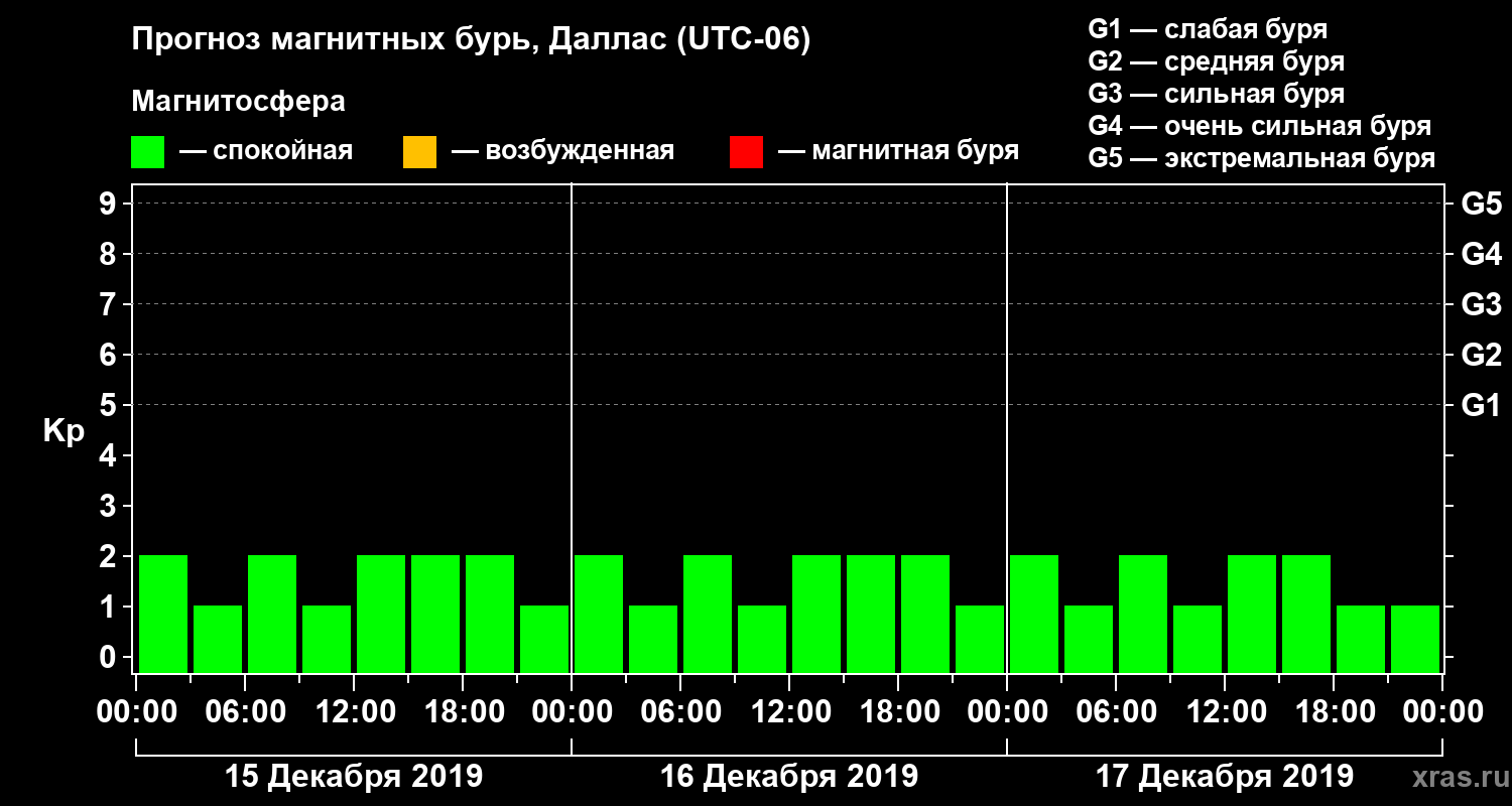 Прогноз магнитных бурь в Далласе — 15 декабря 2019 года