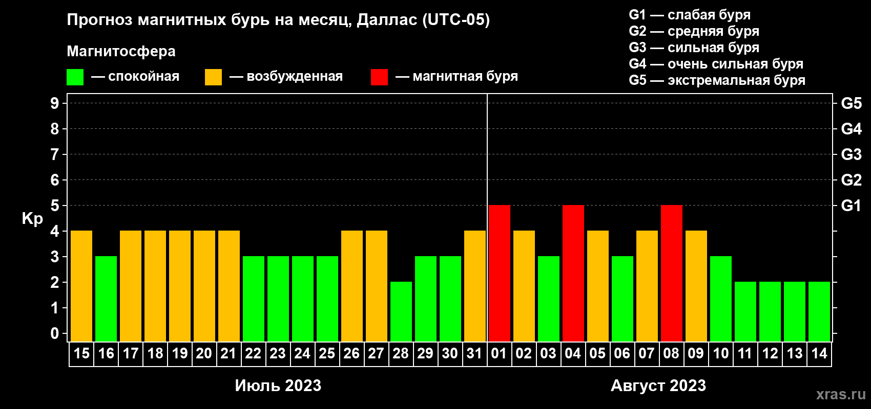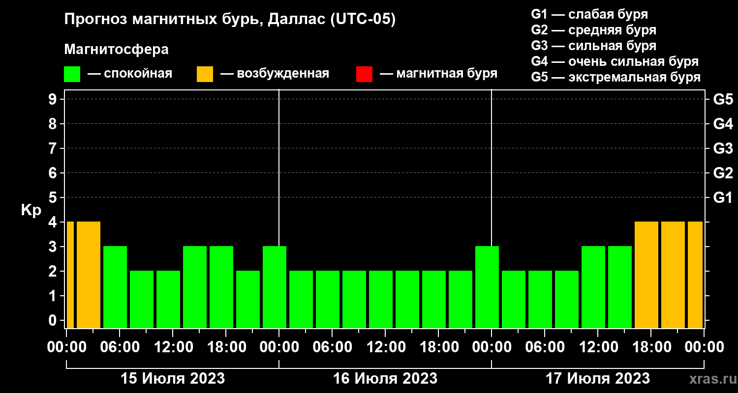 Прогноз магнитных бурь в Далласе — 15 июля 2023 года