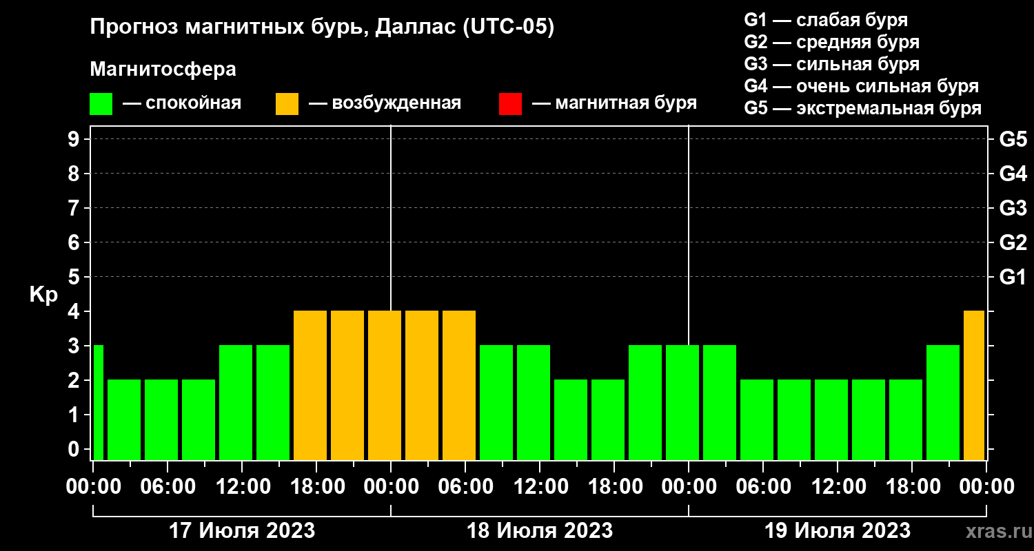 Прогноз магнитных бурь в Далласе — 17 июля 2023 года
