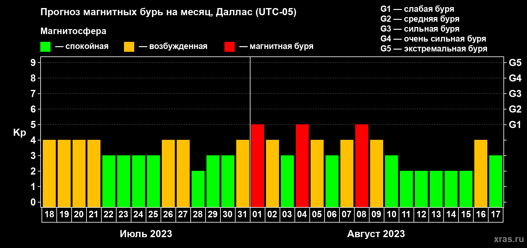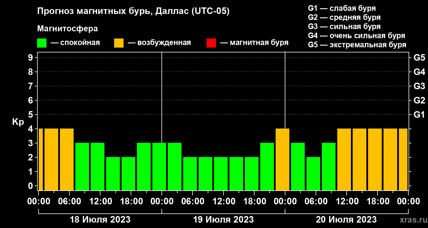 Прогноз магнитных бурь в Далласе — 18 июля 2023 года