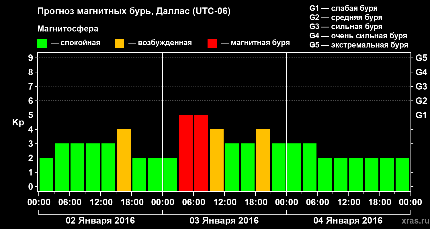 Прогноз магнитных бурь в Далласе — 2 января 2016 года