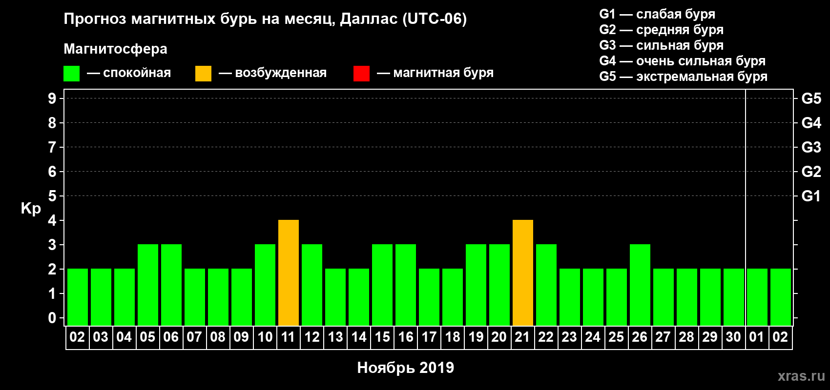 Прогноз магнитных бурь в Далласе — 2 ноября 2019 года