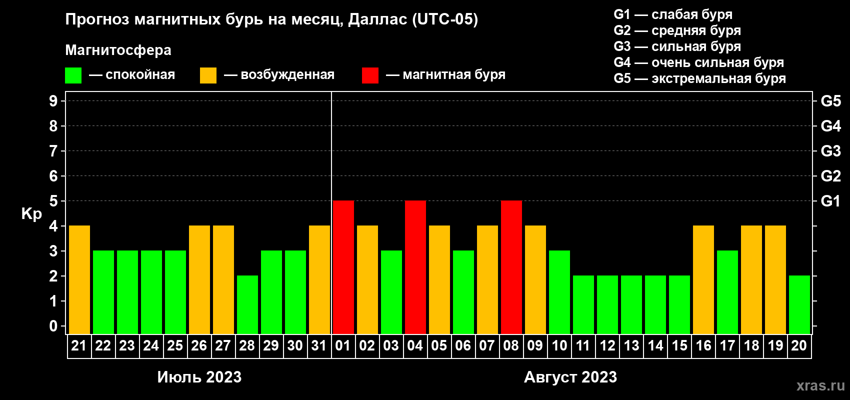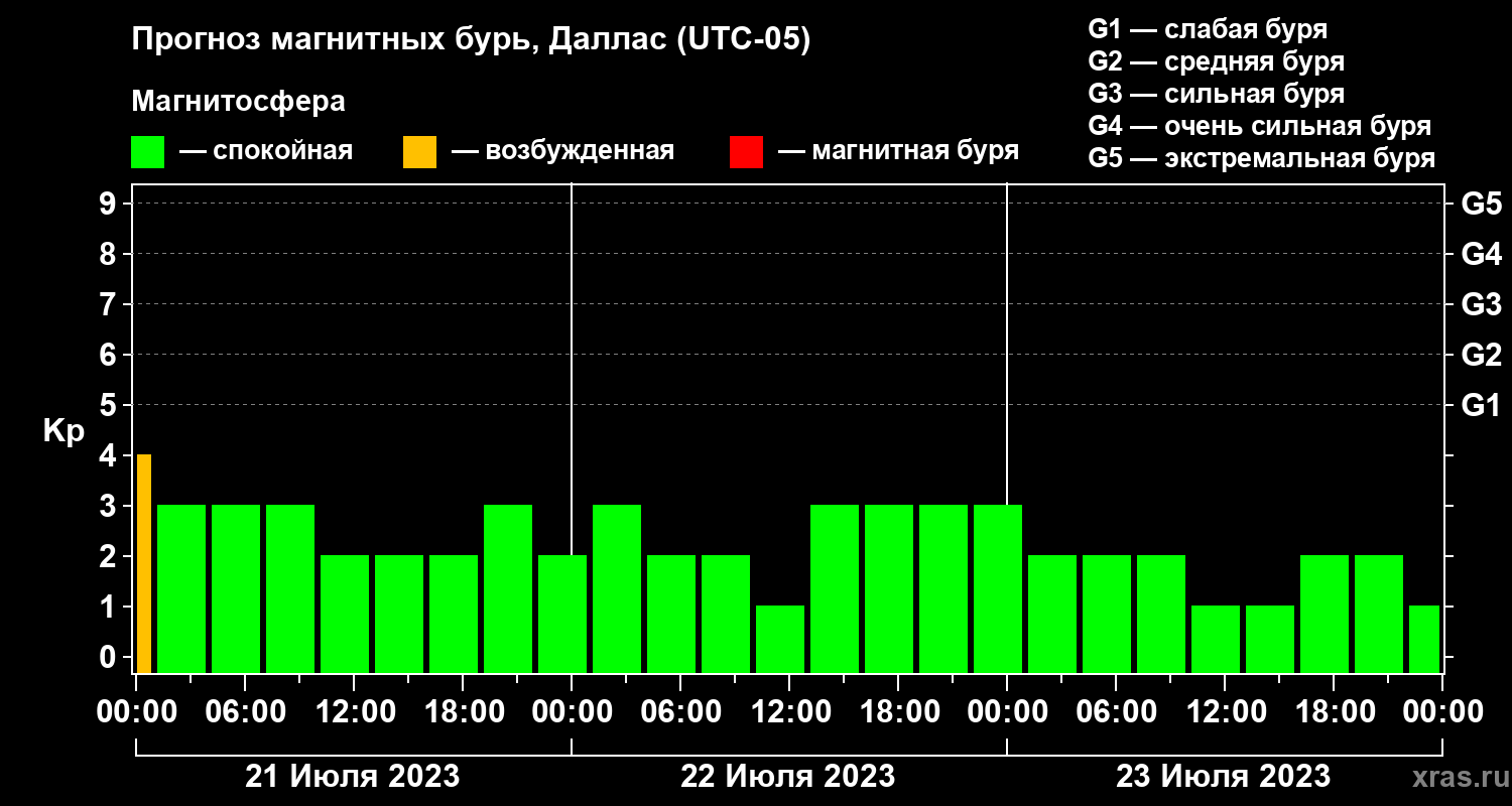 Прогноз магнитных бурь в Далласе — 21 июля 2023 года