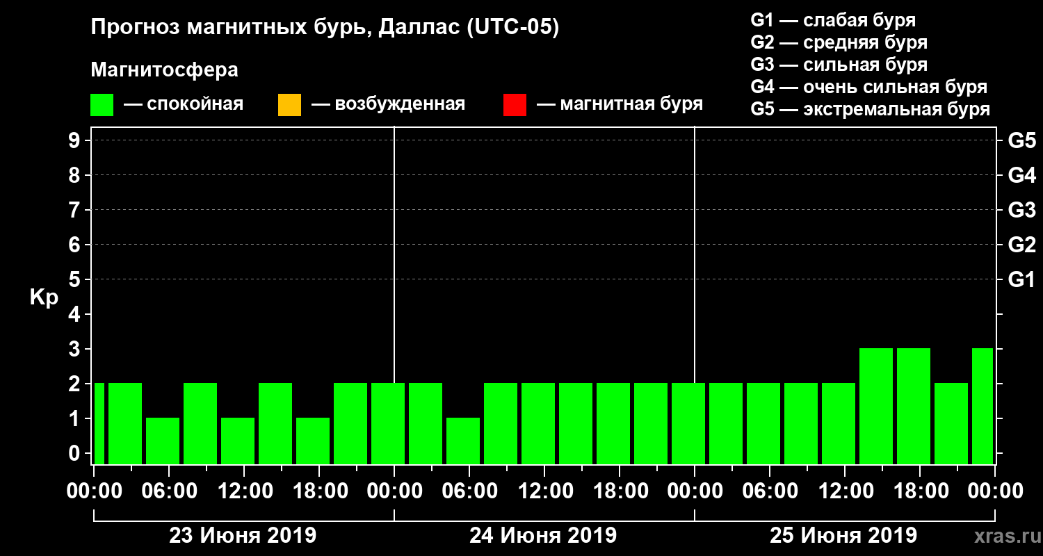 Прогноз магнитных бурь в Далласе — 23 июня 2019 года