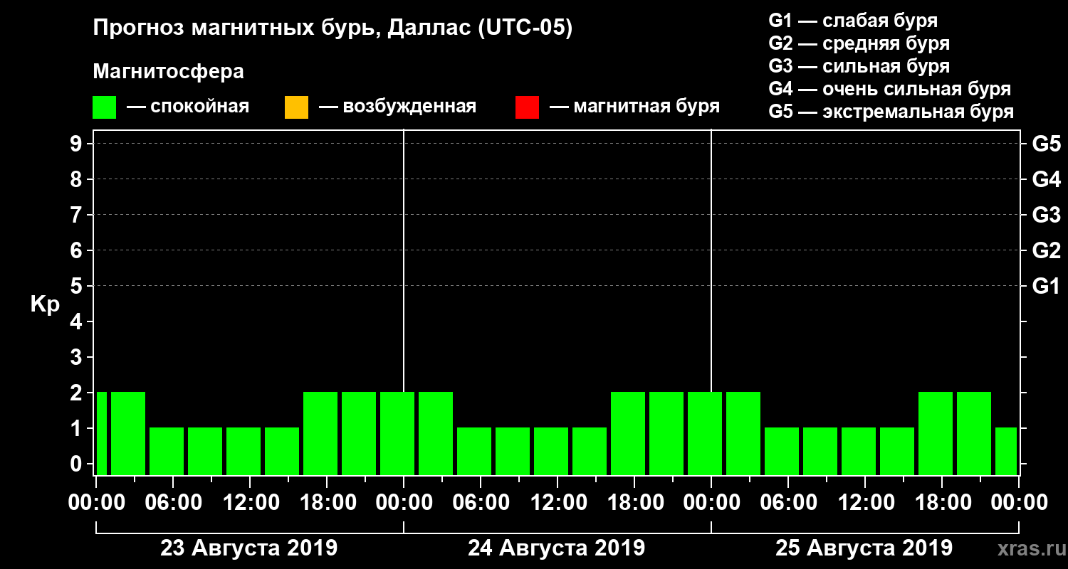Прогноз магнитных бурь в Далласе — 23 августа 2019 года