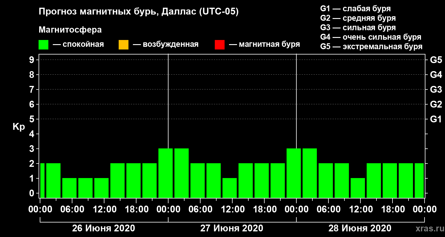 Прогноз магнитных бурь в Далласе — 26 июня 2020 года