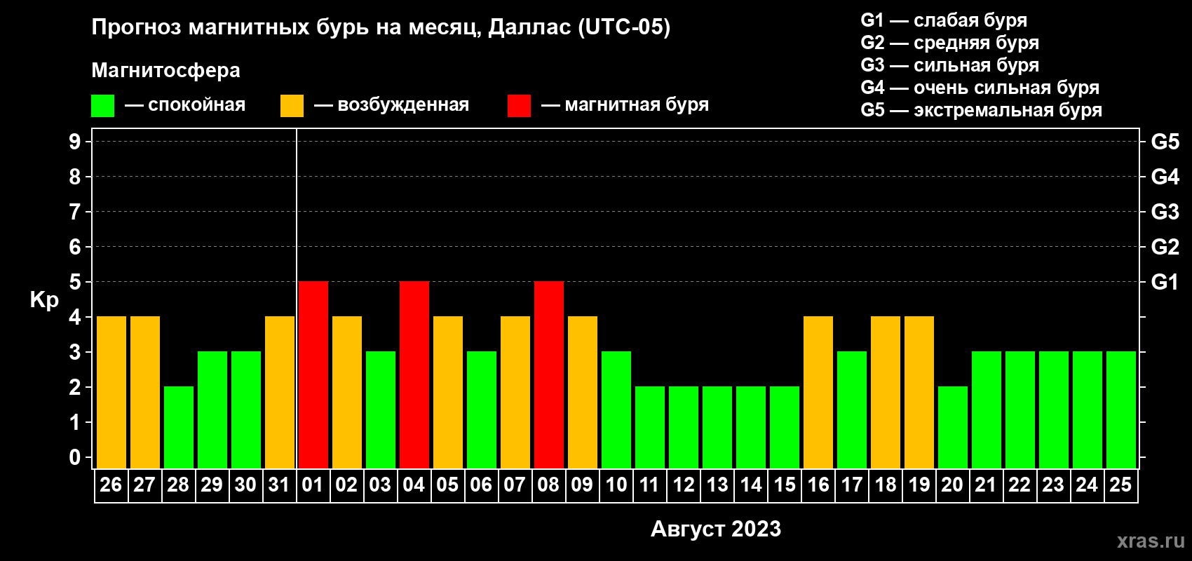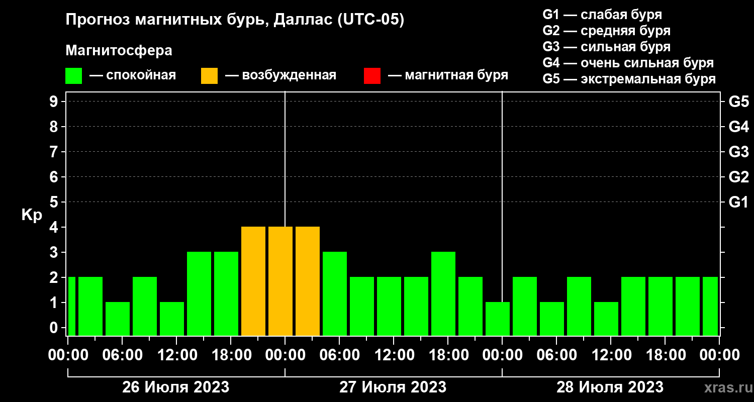Прогноз магнитных бурь в Далласе — 26 июля 2023 года