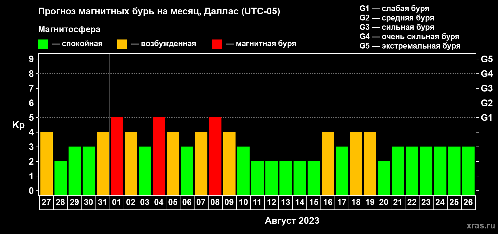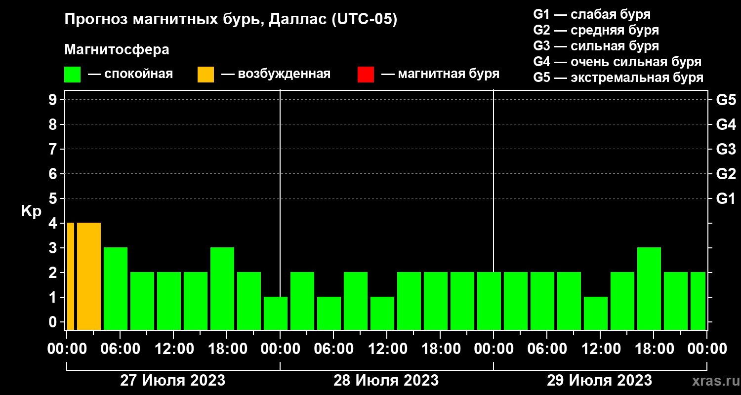 Прогноз магнитных бурь в Далласе — 27 июля 2023 года
