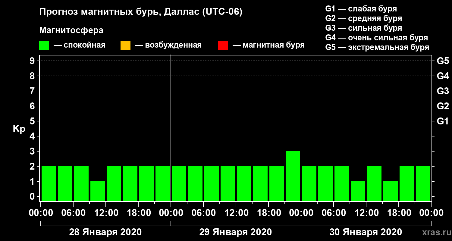 Прогноз магнитных бурь в Далласе — 28 января 2020 года