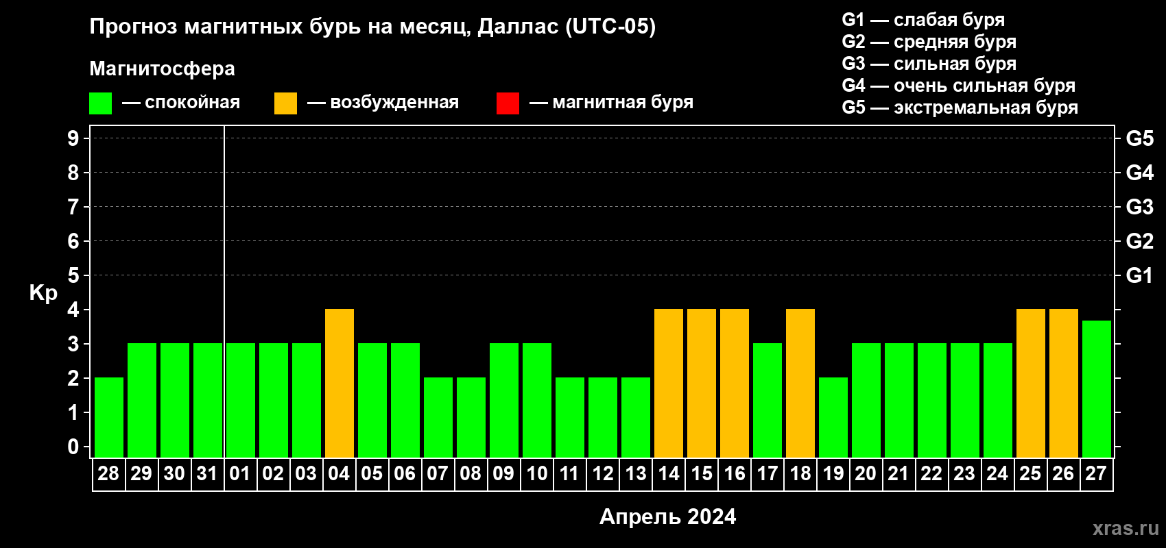 Прогноз магнитных бурь в Далласе — 28 марта 2024 года
