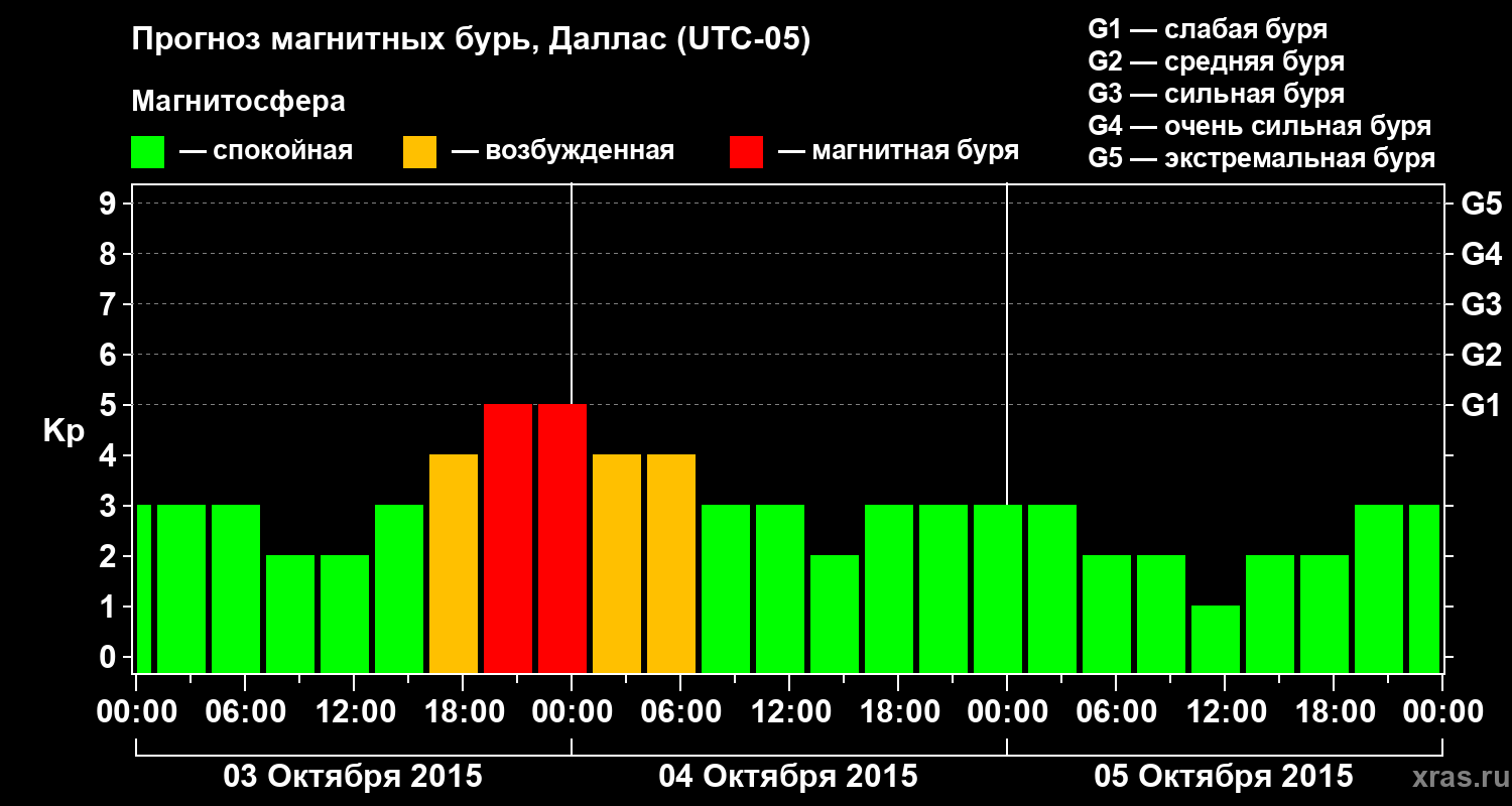 Прогноз магнитных бурь в Далласе — 3 октября 2015 года
