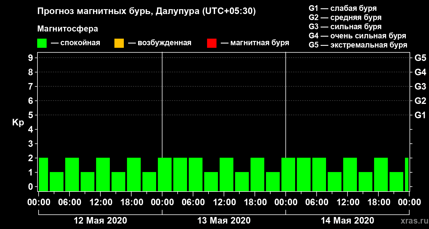 Прогноз магнитных бурь в Далупуре на 12 мая 2020 года