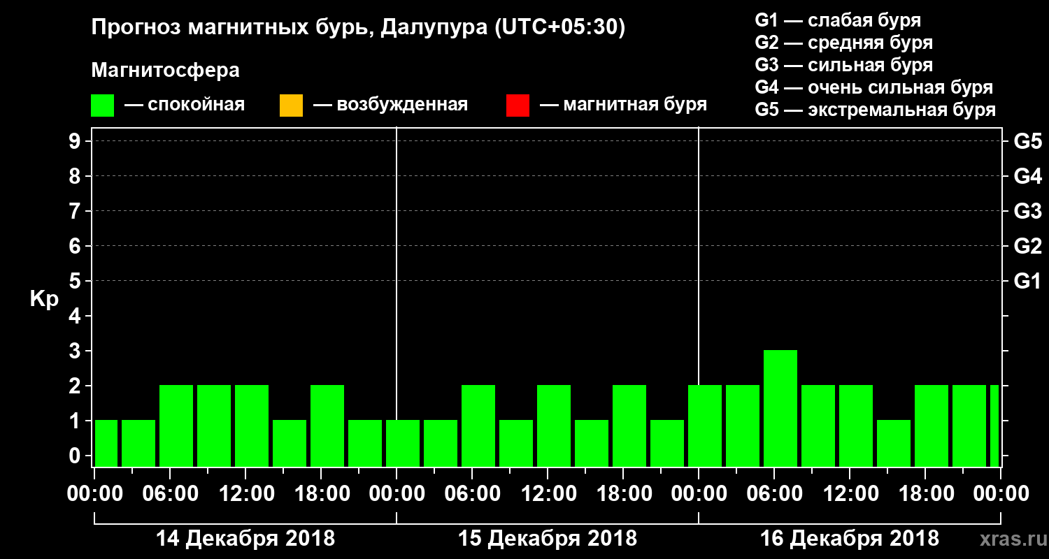 Прогноз магнитных бурь в Далупуре — 14 декабря 2018 года