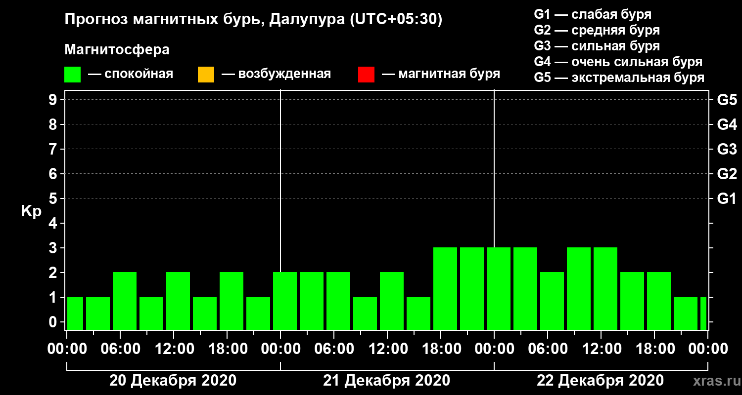 Прогноз магнитных бурь в Далупуре на 20 декабря 2020 года