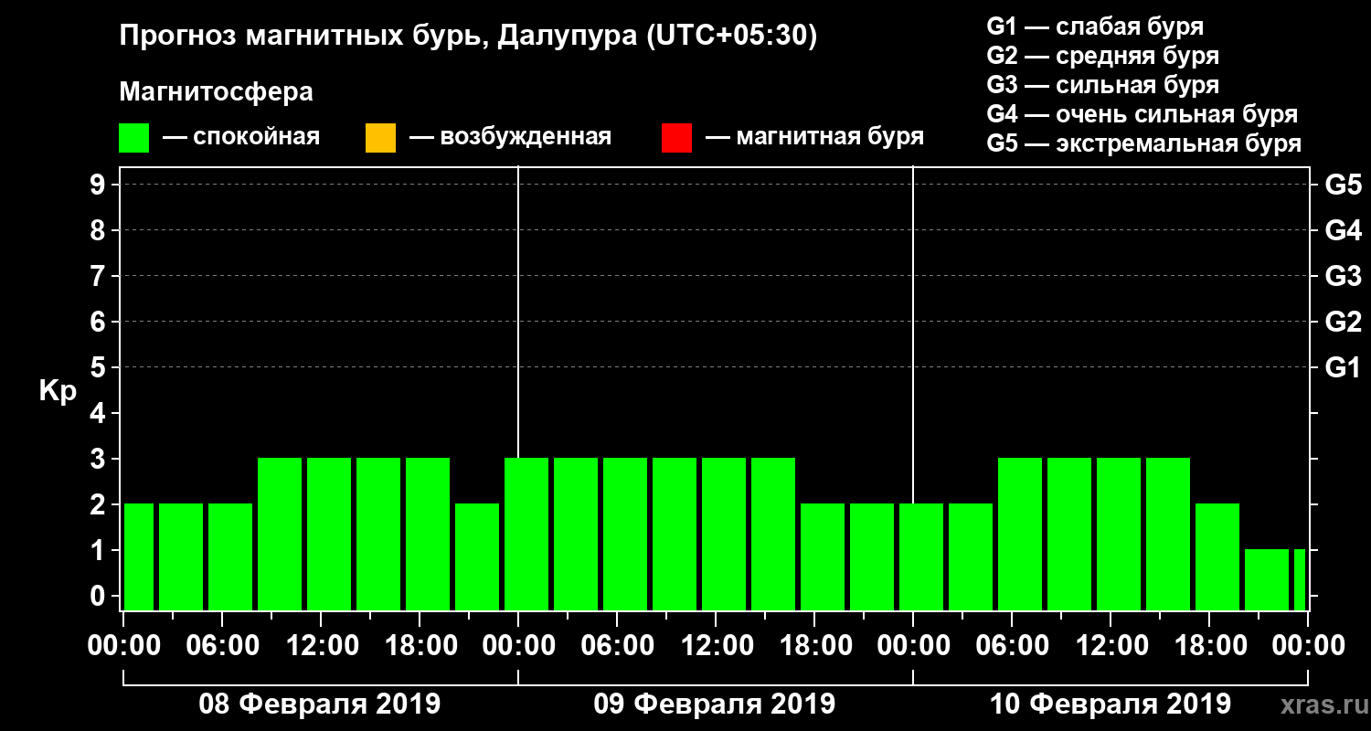 Прогноз магнитных бурь в Далупуре на 8 февраля 2019 года