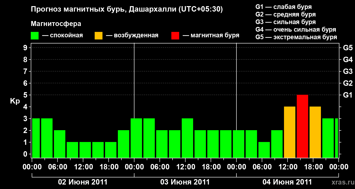 Прогноз магнитных бурь Дашархалли — 2 июня 2011 года