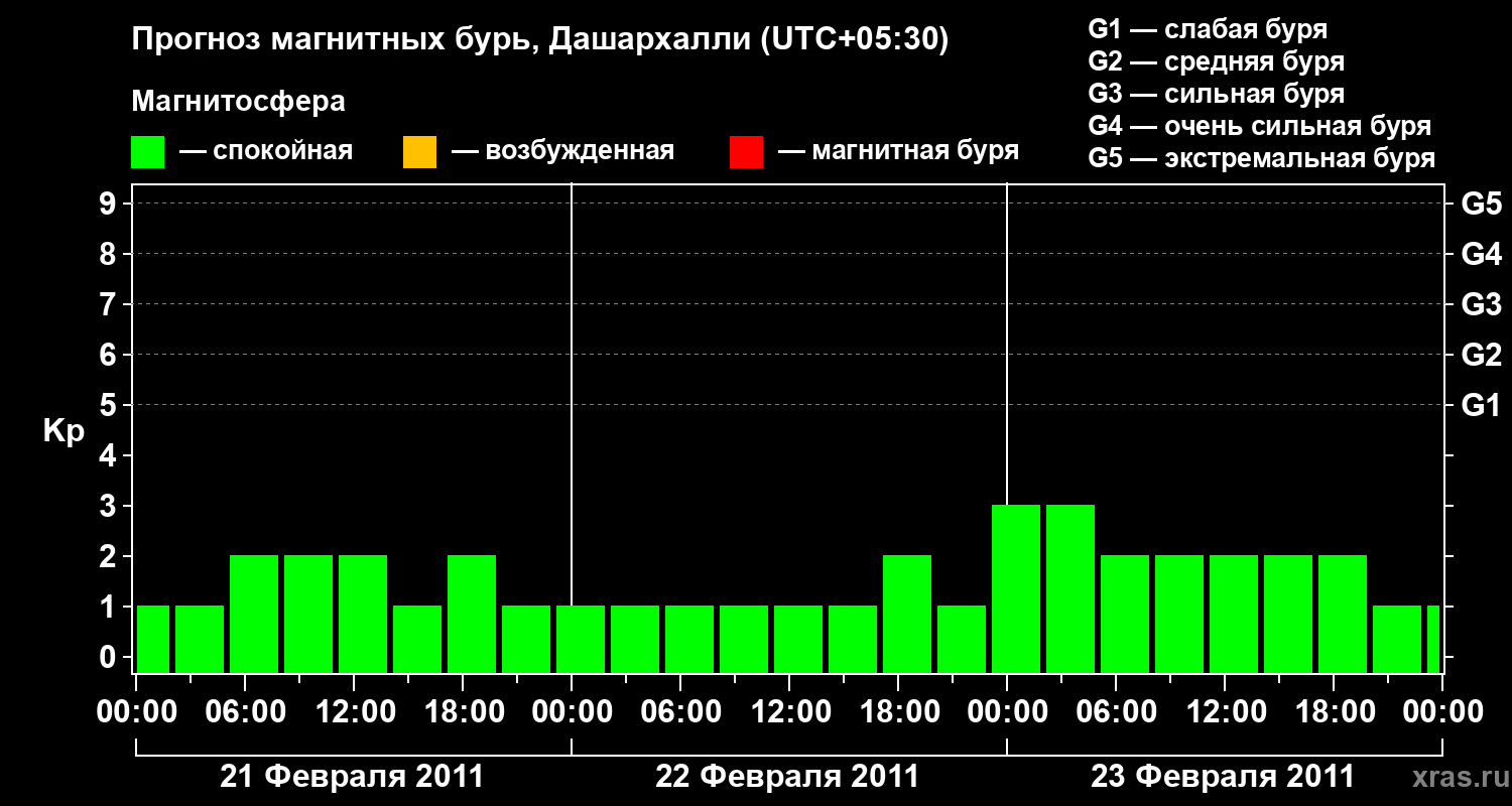 Прогноз магнитных бурь Дашархалли — 21 февраля 2011 года