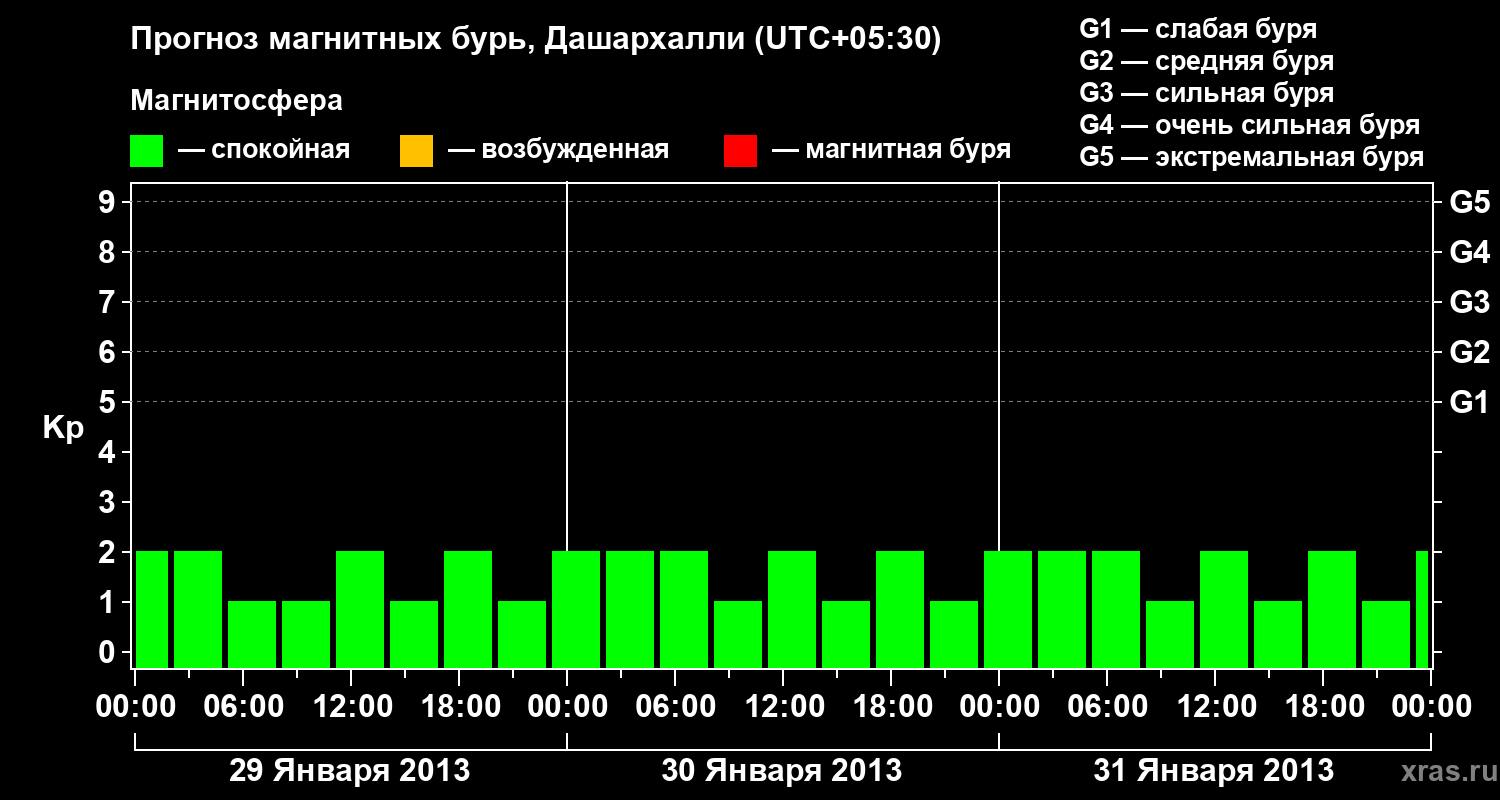 Прогноз магнитных бурь Дашархалли — 29 января 2013 года