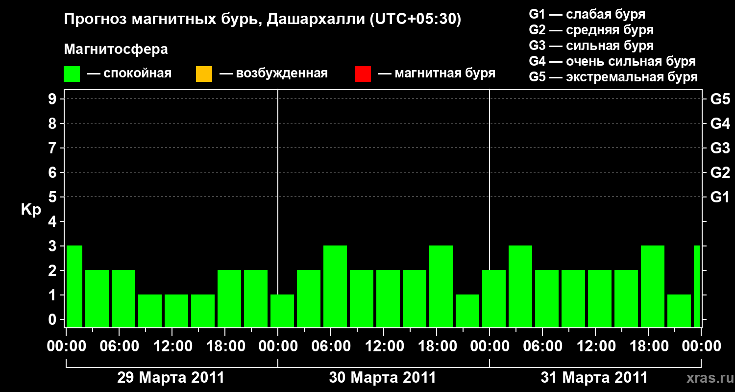 Прогноз магнитных бурь Дашархалли — 29 марта 2011 года