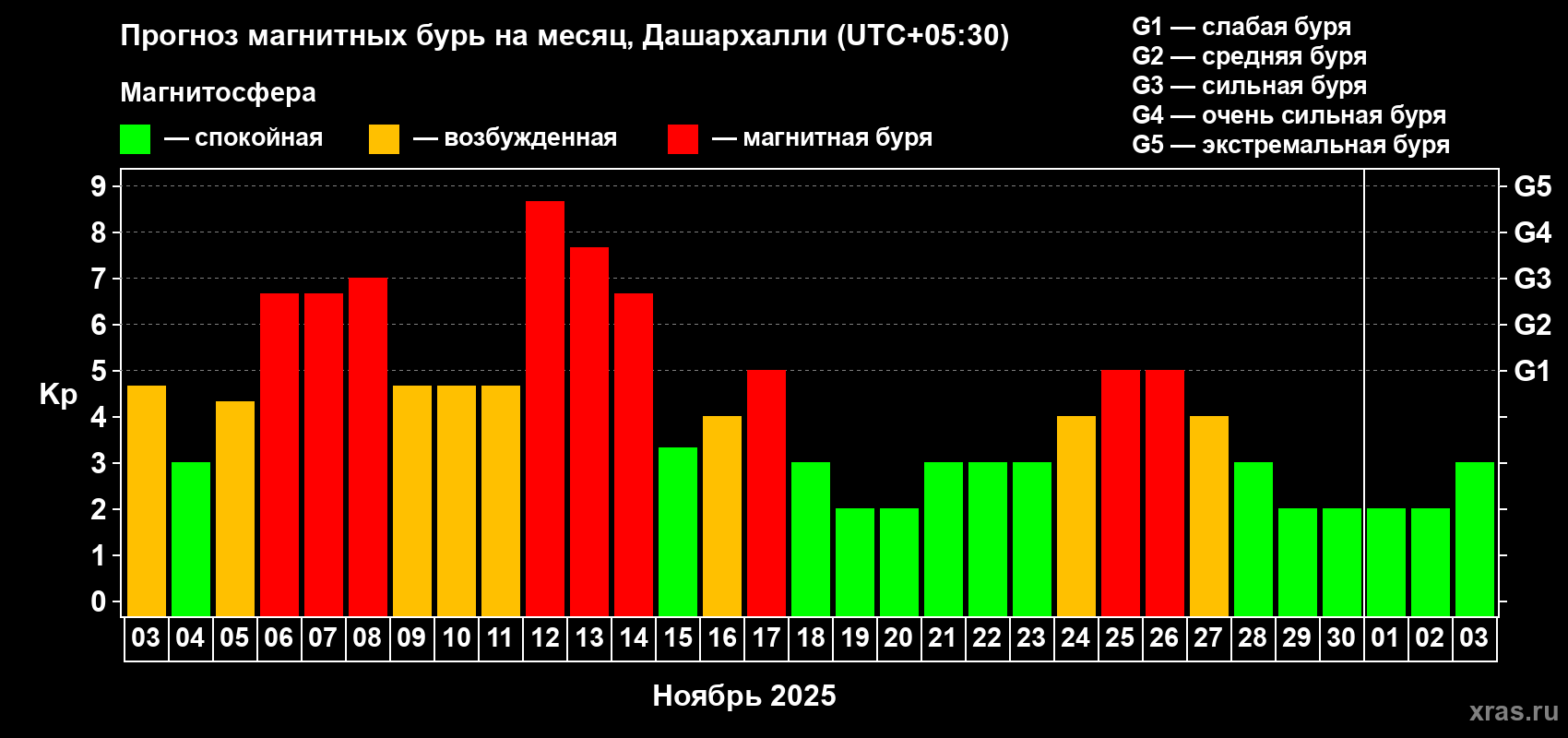 Прогноз магнитных бурь Дашархалли — 3 ноября 2025 года