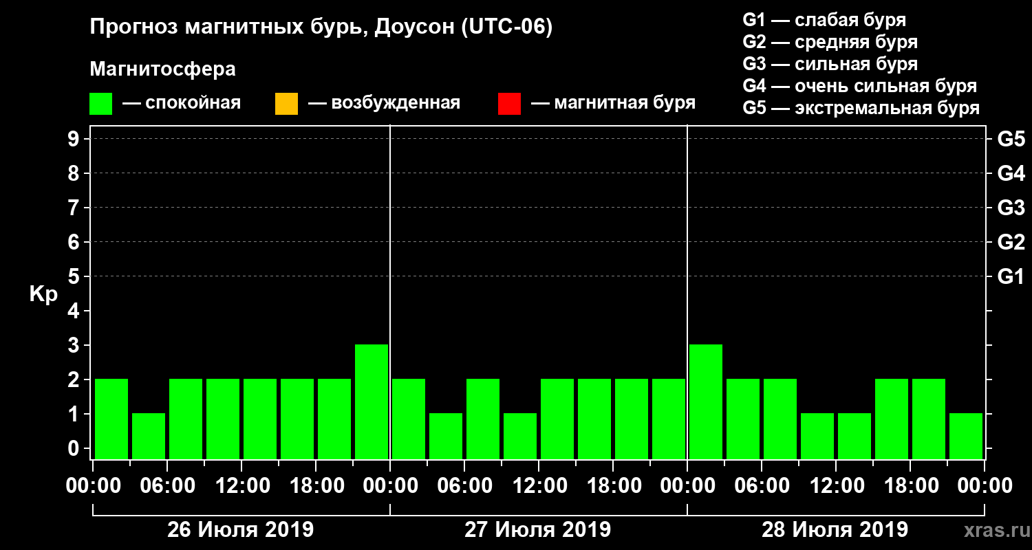 Прогноз магнитных бурь в Доусоне — 26 июля 2019 года