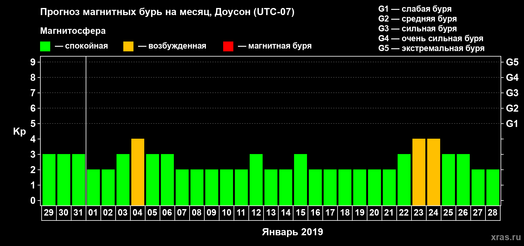 Прогноз магнитных бурь в Доусоне — 29 декабря 2018 года