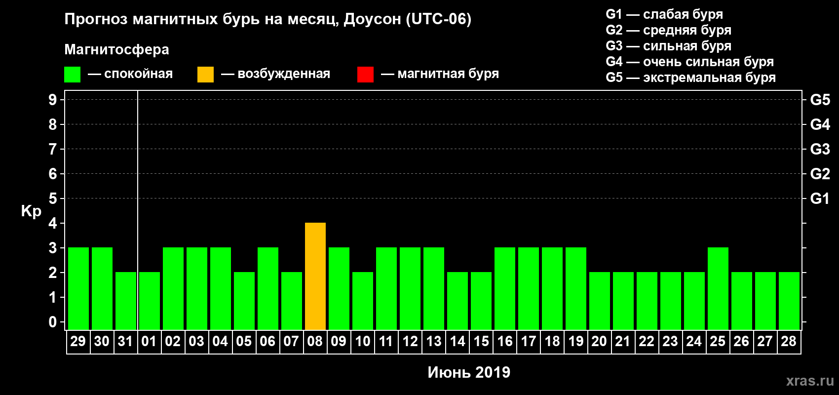 Прогноз магнитных бурь в Доусоне — 29 мая 2019 года