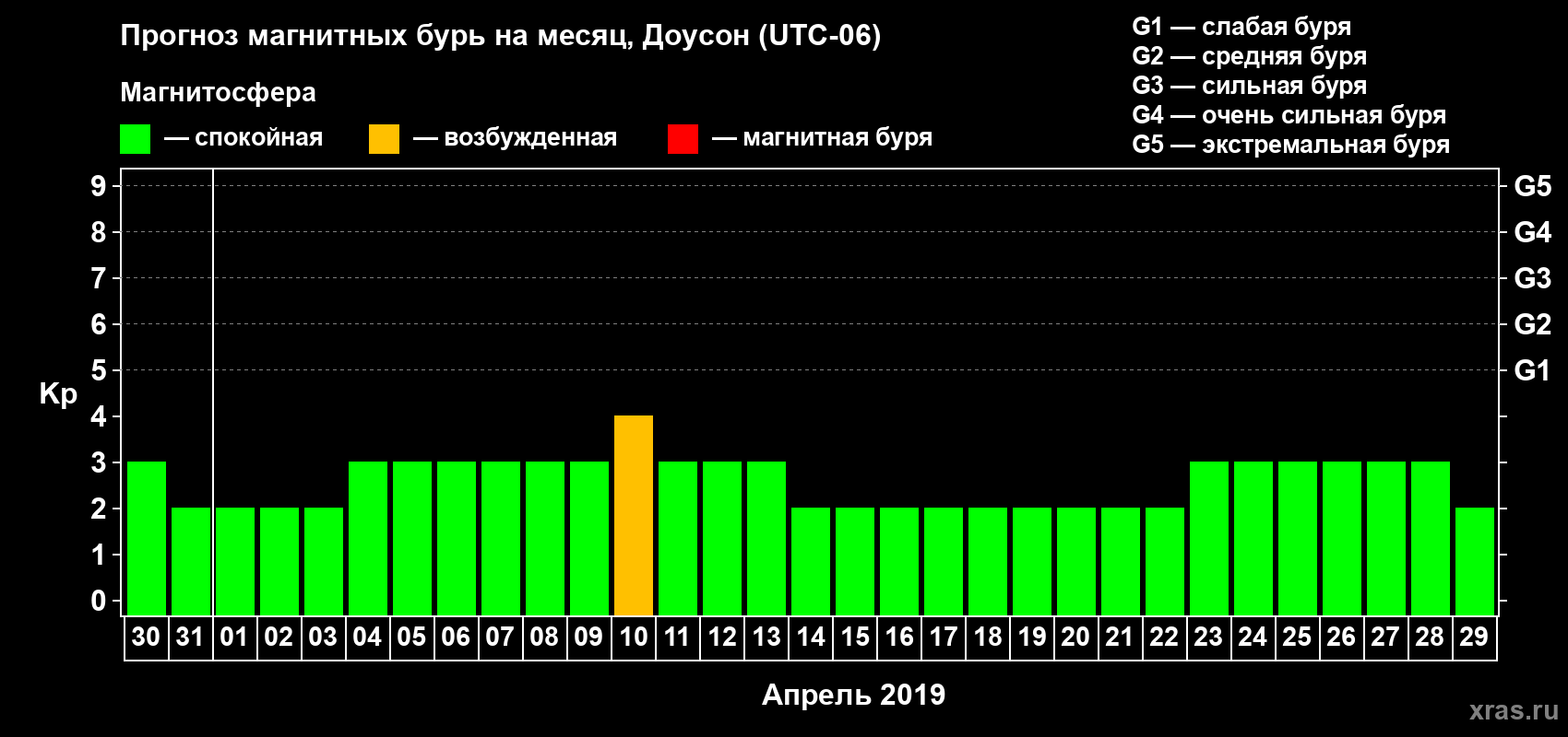 Прогноз магнитных бурь в Доусоне — 30 марта 2019 года