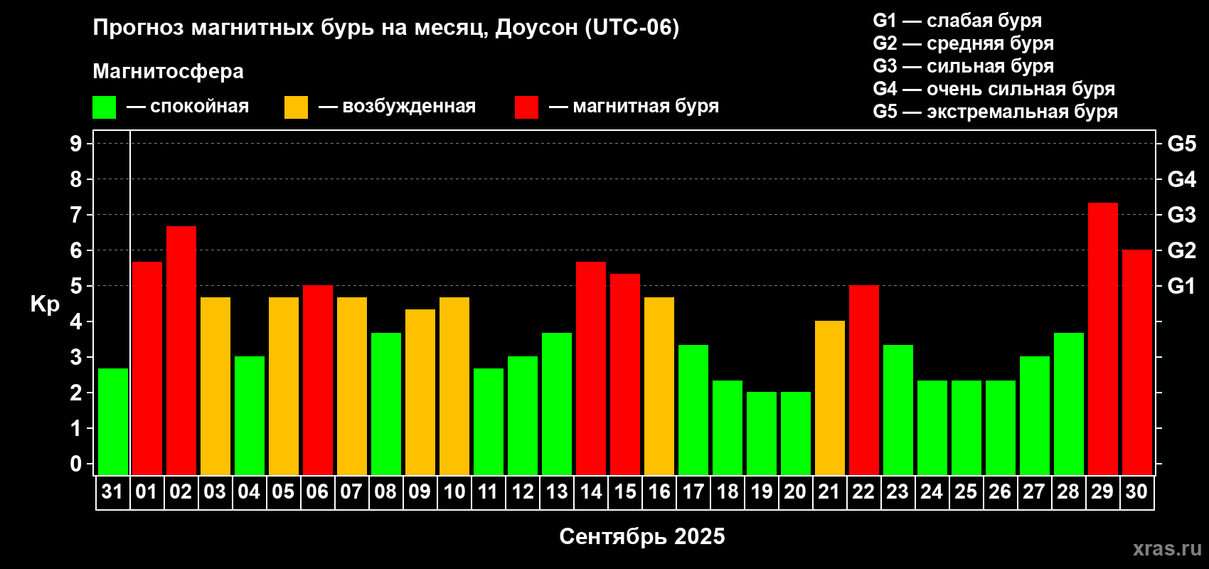 Прогноз магнитных бурь в Доусоне на 31 августа 2025 года