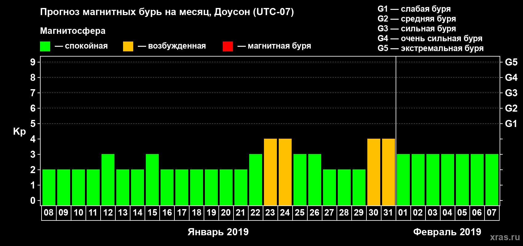 Прогноз магнитных бурь в Доусоне — 8 января 2019 года