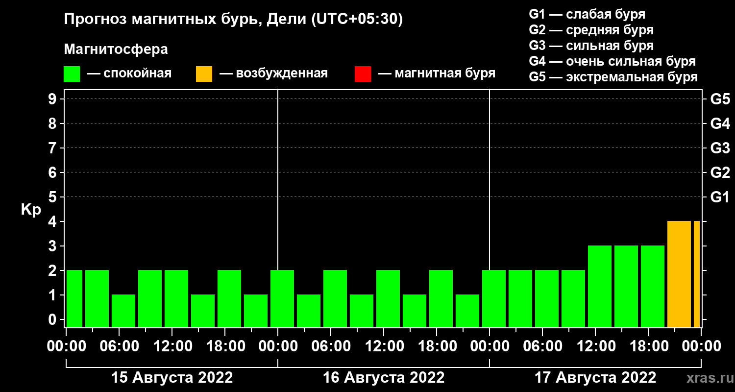 Прогноз магнитных бурь Дели — 15 августа 2022 года