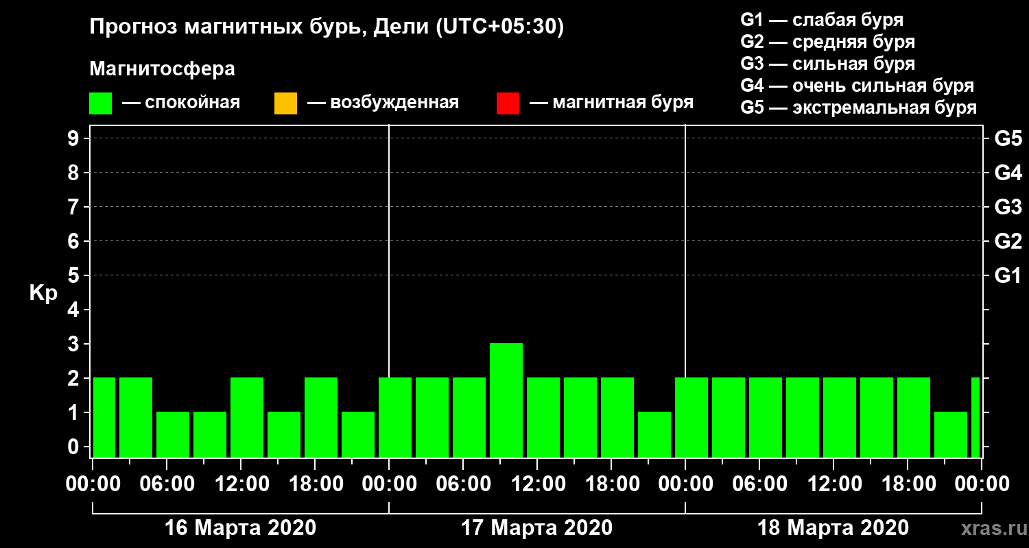 Прогноз магнитных бурь Дели — 16 марта 2020 года