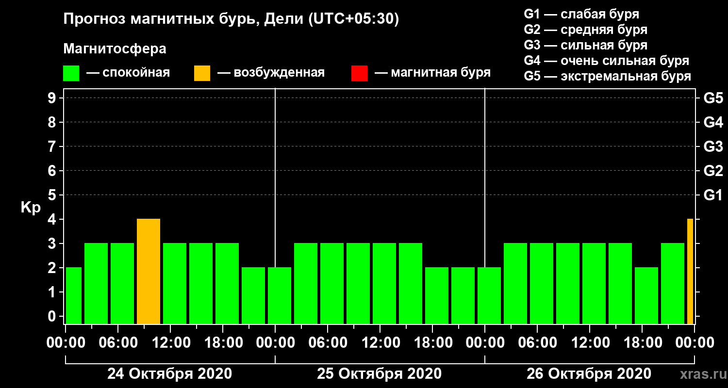 Прогноз магнитных бурь Дели — 24 октября 2020 года