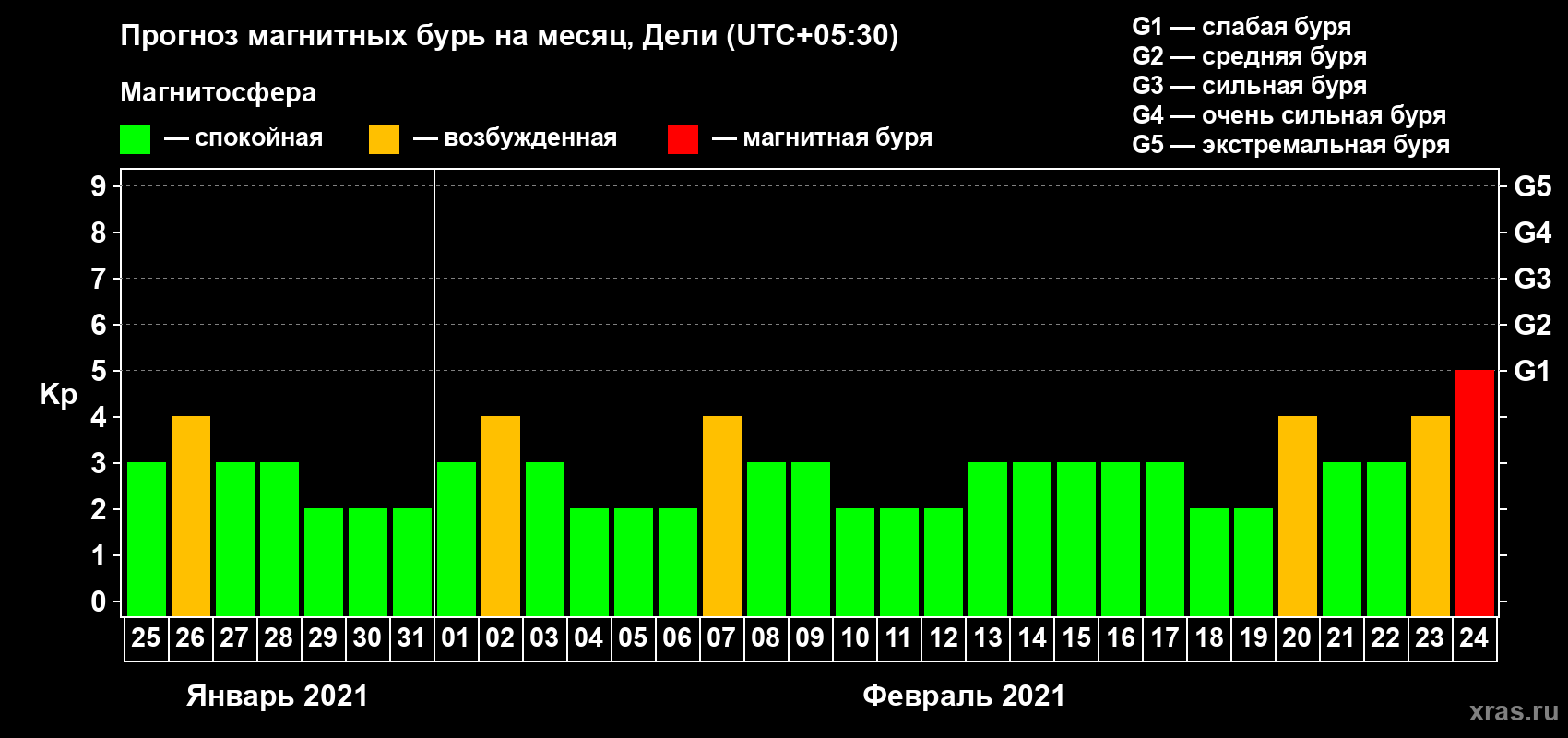 Прогноз магнитных бурь Дели — 25 января 2021 года