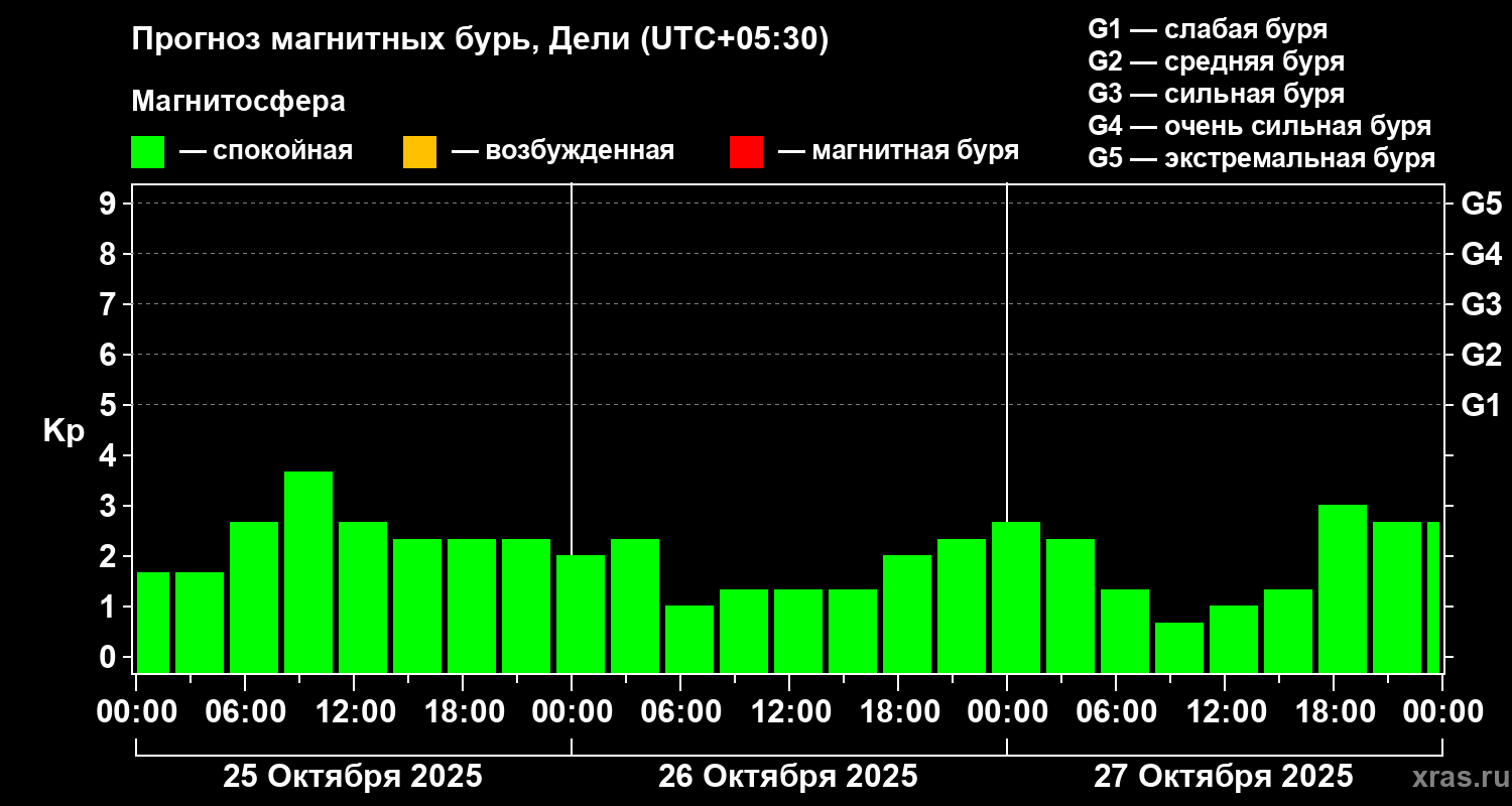 Прогноз магнитных бурь Дели — 25 октября 2025 года